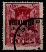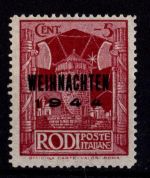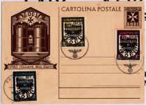 1944, Ganzsache mit Malteserkreuz, philatelistisch geschmückt mit Ausgaben der ägäischen Inseln Rodi