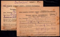 1948, zwei Karten des Gefangenen Hans Armin Vierneusel aus UdSSR Lager 7850 an die Frau mit Glückwünschen und Informationen zu den aktuellen Lebensbedingungen.
