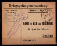 1916, gut erhaltene Kriegsgefangenensendung aus dem Internierungslager Hohenasperg nach Paris, Umschlag leer
