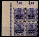 1920, Freimarken 20 Pf, Eckrandviererblock mit Oberrandpaar