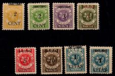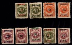 1923, Freimarken mit Aufdruck, Mi.-Nr. 222 deutlich gefaltet (hoch geprüft), alle anderen Werte tief geprüft Matheisen BPP