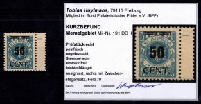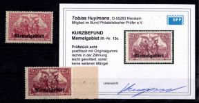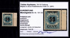1923, Angliederung des Memellandes an Litauen 50 C mit doppeltem Aufdruck 1x schwächer, Kurzbefund 2010 Huylmans BPP "einwandfrei"