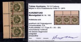 1923, Freimarken 3 C als Dreierstreifen, Kurzbefund 2012 Huylmans BPP "einwandfrei"