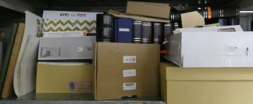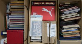 Umfangreicher Sammlernachlass im Regalfach. Dabei ca. 13 Jahre Frankaturware mit etlichen Extras wie MH usw. Unmengen an Bögen und Teilbögen, leider alles aus der DM-Zeit. Dabei sind aber auch viele Dauerserien mit FN usw. Ebenfalls enthalten sind zwei Kisten mit Tütchenware, wobei diese qualitativ top zu sein scheint und auch immer wieder bessere Anfangsware Bund und Berlin gesehen wurde. Zuletzt sind auch noch einige Steckbücher mit recht modernen Ausgaben aus aller Welt, die weitestgehend auch noch Frankaturwert haben.