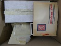 Karton mit vorwiegend deutschen Marken und Belegen in Kisten, Mappen etc.